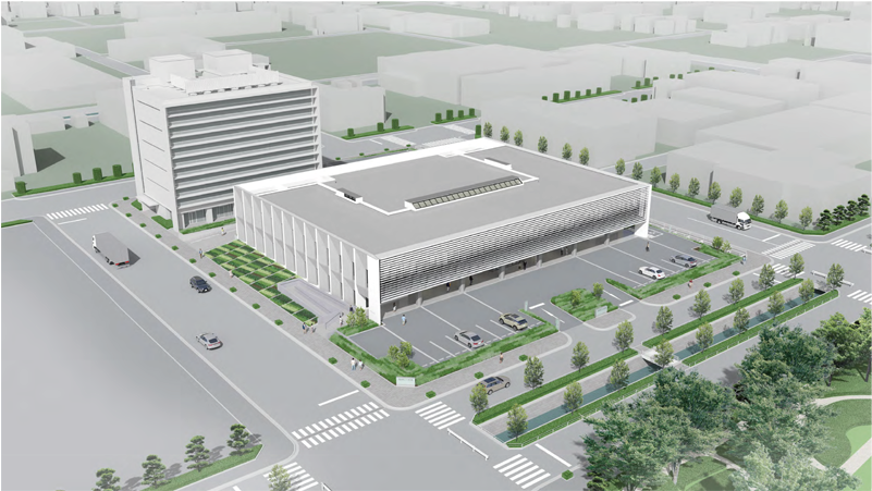 「当初の計画からは2〜3カ月後ろ倒しになりましたが、この卸団地を開設して50周年の節目となる2025年7月に、新会館が竣工する予定です。この新会館は、最新の耐震性能はもちろん、地盤を1mほどかさ上げし、さらに変電設備や受水槽などの重要インフラ設備は2Fに置くことで、水害が発生しても機能停止することがない設計となっております。また3F以上は万一の際、組合員だけでなく、地域の人々の避難場所とすることも考慮しています。もちろん、平常時はこのエリアの産業拠点としての機能に加え、地域の人が交流できる賑わいスペースとしての活用を想定しています」(佐野氏)