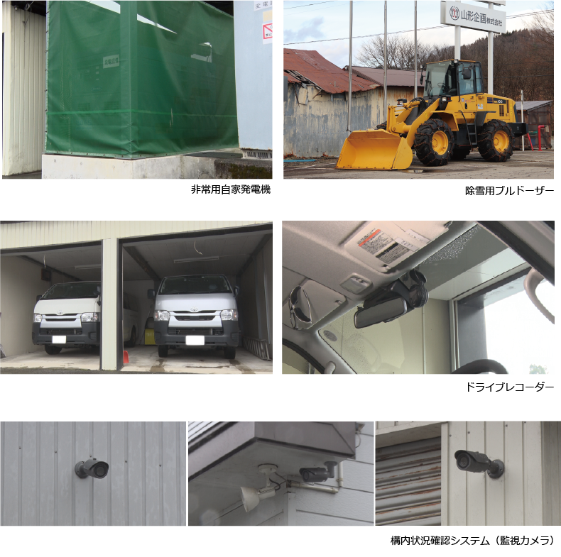 「本社社屋は川に近い立地ですが、川そのものとは大きな高低差があるため、直接の被害はないと想定しています。しかし社員の通勤経路によっては川の増水、溢水が移動の妨げになることがあります。そのため社員には身を守ることを最優先とするよう徹底し、さらに電話、SNSなどを使った安否確認の仕組みを策定しました。一方雪害は、水害同様に交通障害の発生が被害の中心となりますが、もうひとつ大きなリスクとして考えられるのが停電です。短時間に大量の降雪があると、雪が積もった木の枝が折れたり、木そのものが倒れたりして送電線を切断し、停電を引き起こすのです。こうした事故は送電線が通る山間部で発生するため、現場の特定が難しく、また復旧作業は降雪が落ち着いてからになるため、時間を要することがほとんどです。こちらへの対応は、ジギョケイ認定後に追加のBCP対策として行うこととしました」(髙橋氏)