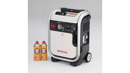 「通常、消費電力が900VA(W)以下であればEU9i、2800VA(W)以下であればEU28isといった具合に、出力に応じたガソリンを燃料とする正弦波インバーターモデルをお勧めしています。ただ、ひとつ気をつけておかなければいけないのが、倉庫などに長期間放置する場合、キャブレター内から正しく燃料を抜かないと、その内部に残った燃料が空気に触れ、劣化が進むとエンジンがかからなくなることがあります。また、災害直後はガソリンが入手困難になることが考えられるので、いざ使用する時になって燃料がないという可能性があります。そこで、現在防災用として購入されるケースが目立つのが、カセットコンロのボンベで動く正弦波インバーター発電機(エネポEU9iGB)です。ガソリンの備蓄は難しい点がありますが、カセットボンベであれば保管が容易なうえ、比較的入手しやすいというのも決め手になっているようです。ただし、運転時間はガソリンに劣りますし、カセットボンベ発電機には出力のバリエーションがありません」(ホンダパワープロダクツジャパン木下憲司氏)