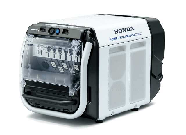 「Power Exporter 9000というモデルがありますが、これは電動車両の充電ポート(CHAdeMO:電気自動車の急速充電方式のひとつ)とPower Exporter 9000をケーブルで接続することで、最大9kVA(9000W)という大容量の電力を取り出すことができます(連続使用時間は車両の搭載する電池容量によって異なる)。EV車は非常に大きな電力を蓄えているので、小規模なオフィスや店舗の非常用電源ならほぼ問題なく使用できます。クリーン エネルギー自動車導入事業費補助金(CEV補助金)」の対象になっており、現在、自治体や企業などから非常に多くのお問い合わせをいただいております。」(ホンダパワープロダクツジャパン木下憲司氏)