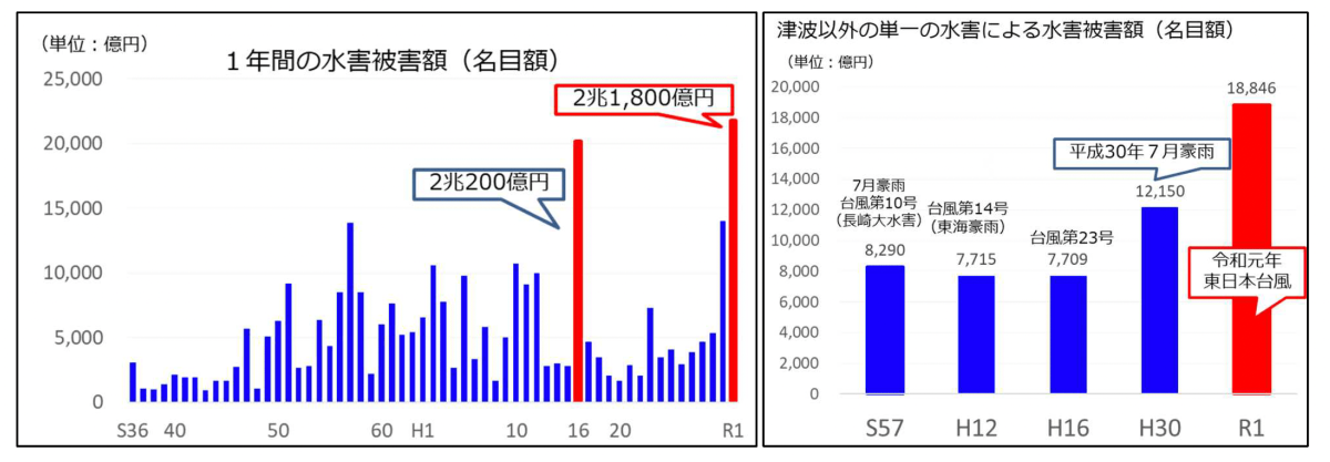 (出典:国土交通省 令和元年の水害被害額[確報値]を公表より)