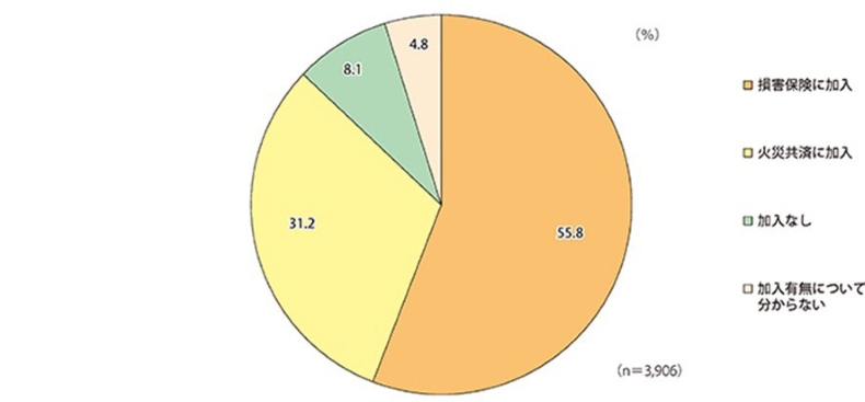 3.加入している商品の補償内容が、「水災による損害に対応しており、浸水条件を満たした場合、損害を受けた額の一部割愛を補償する商品」、または「水災による損害は補償しない」となっている者を集計している。