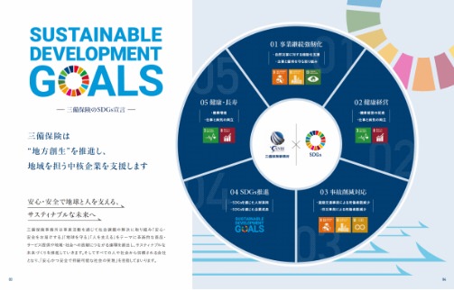 「社長も申しておりますが、私たちは“お客様の永続がなければ、私たちの永続はない”と考えています。保険の販売だけではなく、顧客を守るという意識を持ち、顧客のために何ができるか。それが今後の損保代理店に求められる課題だと思っています。その取り組みとしてこのパンフレットを製作し、SDGsがBCPとどのように結びついているのか。SDGs 17の目標の13である『気候変動に具体的な対策を』に基づいて、BCP、並びに事業継続力強化計画の策定の必要性があることを理解していただいております。そうした取り組みを続けることで、安心安全で持続可能な社会を実現することを目指しています」(熊本氏)