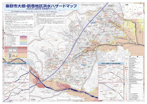 複数の災害による被害想定を1枚のハザードマップにまとめている自治体もあれば、災害ごとにハザードマップを作成している自治体もあります。自治体によって対応が異なる理由は、利用する方が災害発生時に適切に利用できるように、地域特性を考慮し、わかりやすく伝えることを目指しているからです。たとえば、茨城県大洗町では、町の東側が海に面しており、西側が河川に面しているため河川の氾濫による水害と地震による津波の被害想定を1枚のハザードマップに重ねて表示しています。また、神奈川県秦野市では、河川の氾濫による浸水と内水氾濫による浸水の想定区域を1枚のマップで表現しています。いずれの自治体も複数の災害による被害想定を重ねた時に、見やすさを損ねないように工夫されています。