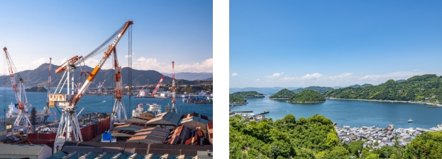 呉広域商工会がある広島県呉市は、瀬戸内海沿岸のほぼ中央に位置し、「海あり山ありの自然と温暖な気候」「海上交通の要所としての歴史」「広島のものづくりを支える高い工業技術」が魅力です。また、呉広域商工会が管轄する地域では、旧呉市を取り巻く広域の沿岸部、島しょ部からなっており、古くから日本最大の生産量を誇る牡蠣やかんきつ類など、瀬戸内の海を取り巻く1次産業と観光資源、鉱工業品・技術が豊かな地域でもあります。