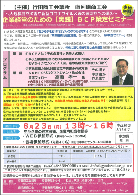 「行田商工会議所は、令和2年度に行田市と協働して防災計画の策定事業を行っており、令和3年度は年間20社を目標に同様の取り組みを行うことを計画していました。そこに奨励金交付のお話とともに目標を100社に拡大したいと聞いて、商工会議所としても地元企業のためになるのならと、広報活動にさらに力を入れました」