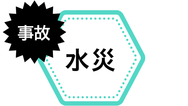 台風による大雨により前面の田んぼより店舗内に汚水が流れ込み床上浸水した。建物と設備什器が濡損、汚損、破損するなどし、高額な修理費用が必要となった。 |