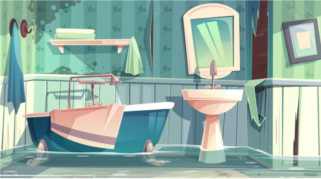 店舗内の天井部分にある給排水管から漏水が発生し、内装や設備什器に濡損が発生した。 |