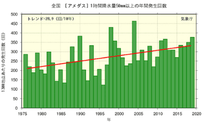 「日本国内の大雨及び短時間強雨の発生頻度が増加している」