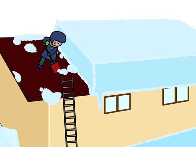 - 晴れの日ほど要注意、屋根の雪がゆるんでる!