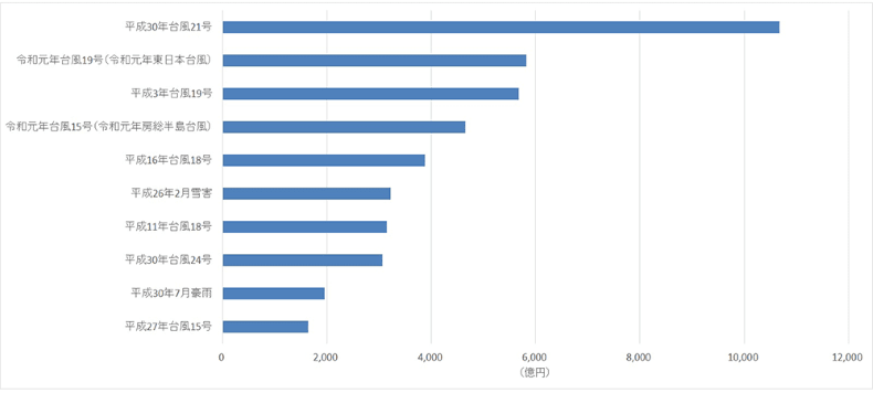 「過去の風水害等による高額支払保険金事例(見込み含む)