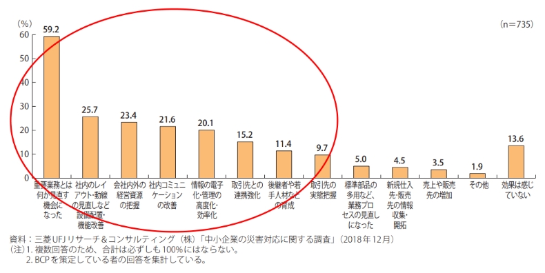 BCP(事業継続計画)を策定することによる、平時のメリットを調査したところ、図表3のような結果が得られています。